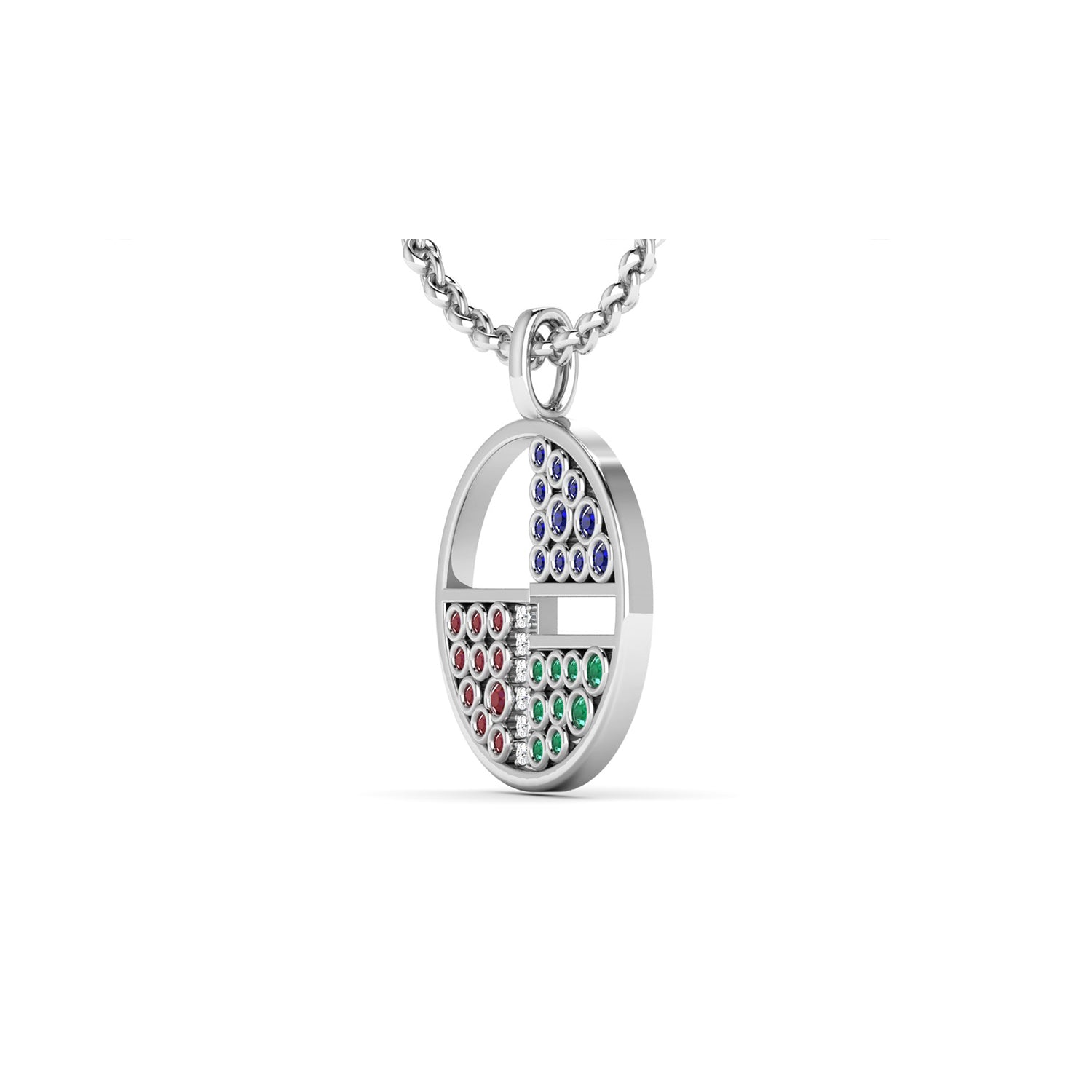 This pendant designed to connect with five elements of the human body and the physical world: Air, Water, Fire, Earth and Space. Comes in Rollo Chain for sharp look.