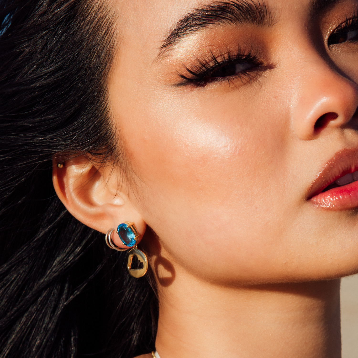The cloud whisper earring is truly a distinctive design, not for its price, but for the artistic journey behind its creation. It's an embodiment of imagination and craftsmanship, where a cloud seems to effortlessly cut through the metal, revealing the ethereal beauty of Swiss Blue Topaz.